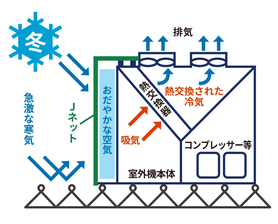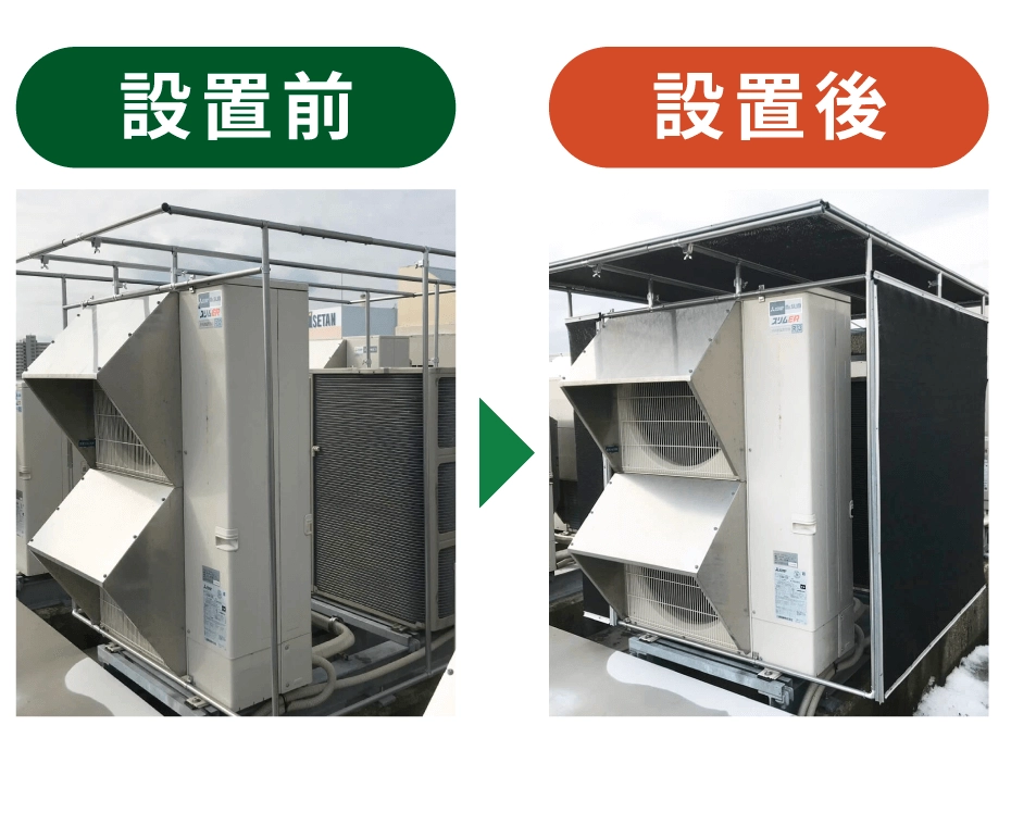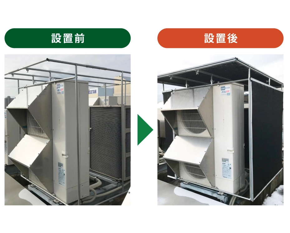 \空調の室外機や屋根に特殊なネットをかぶせるだけ!!/